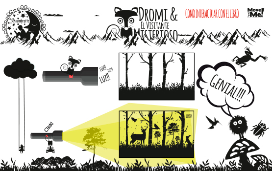 1.-Detrás de cada página debes iluminar para poder descubrir los paisajes y personajes de la historia.(Preferiblemente de noche)